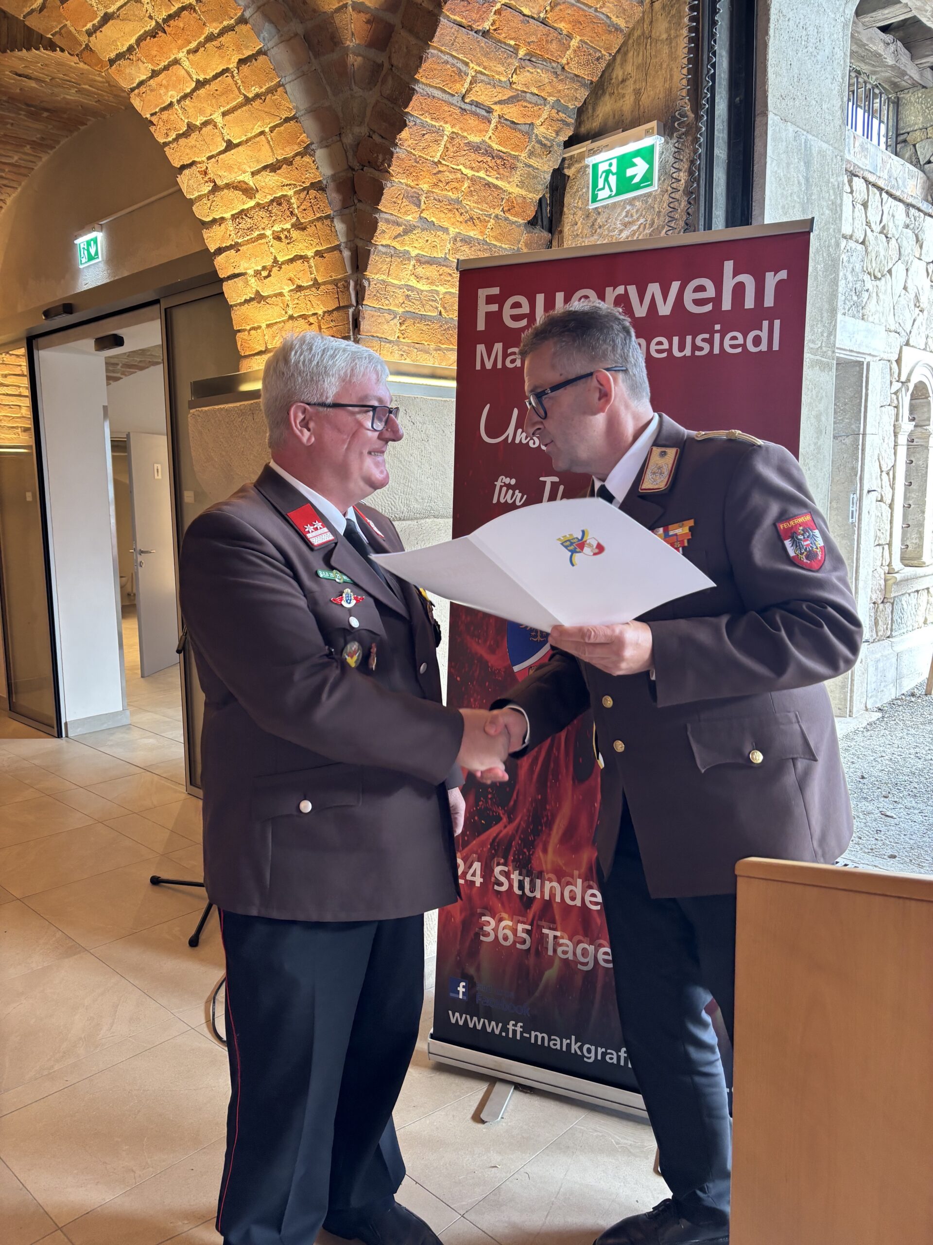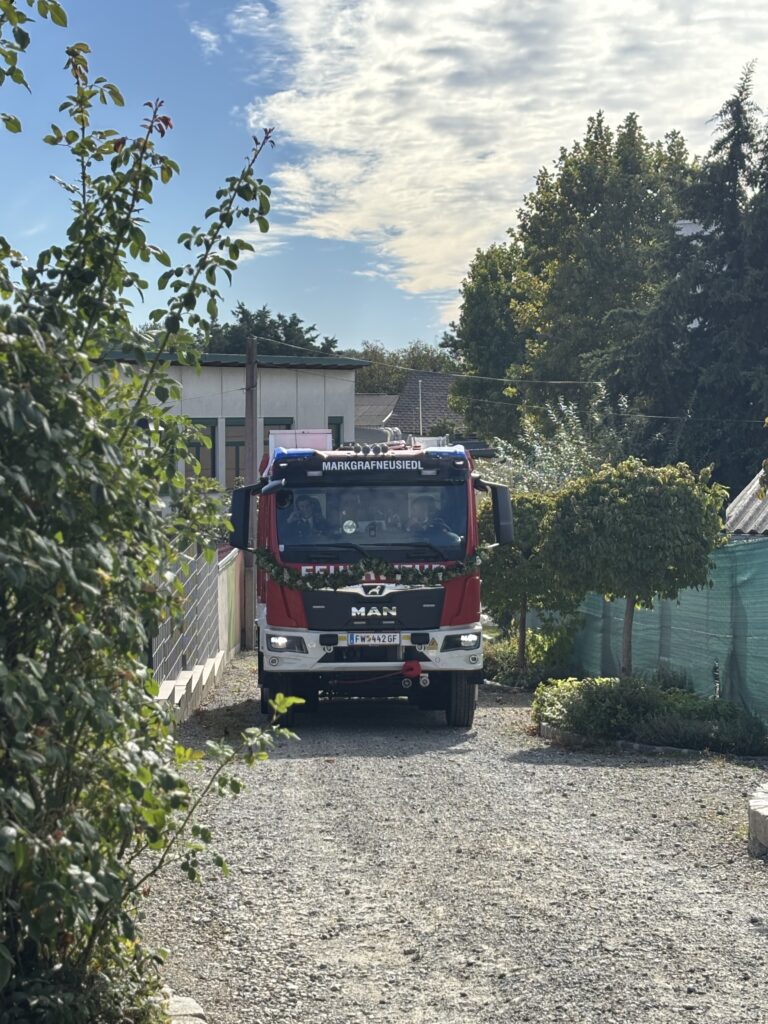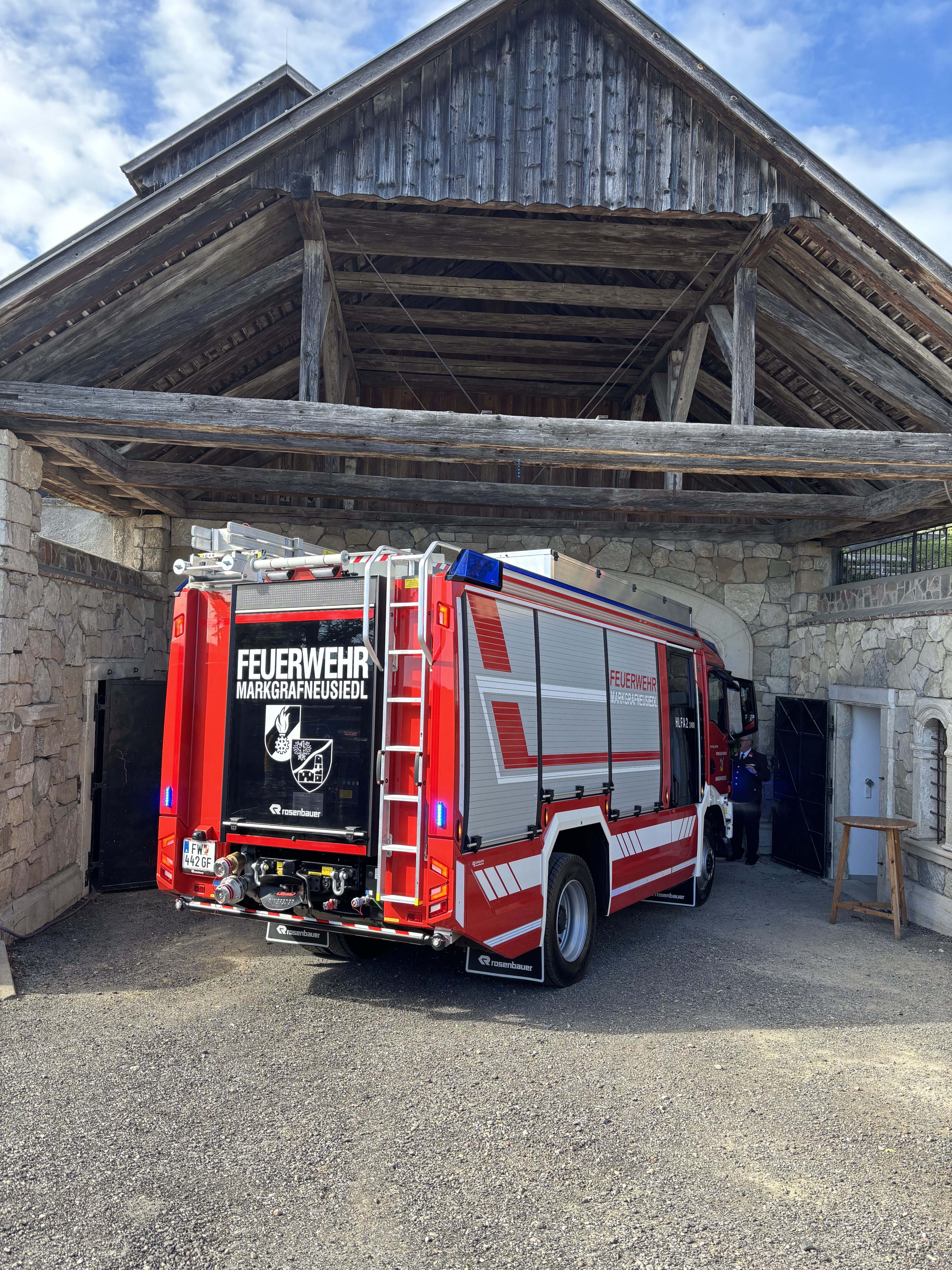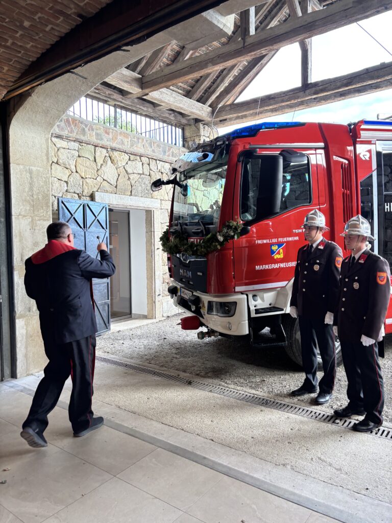 In seiner Ansprache ließ Kommandant Hofer das Projekt sowie den Ankauf des Hilfeleistungsfahrzeugs 2 Revue passieren und gab einen Überblick über die nicht unerheblichen Kosten. Ein besonderer Dank galt der Gemeinde, die einen großen Teil der Finanzierung übernahm und damit der Feuerwehr ein komplett neu ausgestattetes Fahrzeug zur Verfügung stellte. Neben der Förderung des Landes konnte auch die Feuerwehr Markgrafneusiedl selbst einen Teil der Kosten übernehmen – möglich gemacht durch die Unterstützung der Bürgerinnen und Bürger der Gemeinde sowie die Besucherinnen und Besucher unserer Feste.
