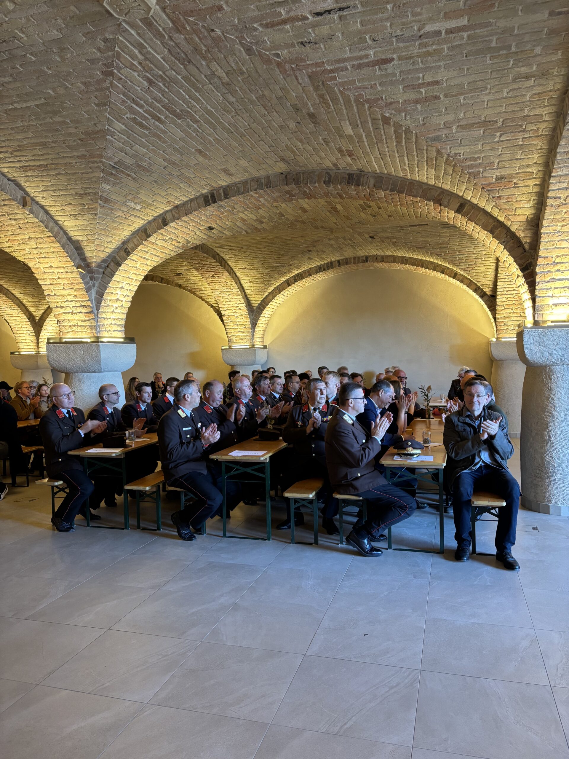 Neben den Ansprachen von Abgeordnetem René Zonschits und Bezirksfeuerwehrkommandant Georg Schicker ergriff auch Präsident Mayer das Wort. Er gratulierte nicht nur zum neuen Fahrzeug, sondern hob hervor, wie viel Engagement in Ausbildung und Übung investiert werden muss, um ein derart modernes Einsatzmittel professionell bedienen zu können. Zudem betonte er, dass Gemeinschaft und Zusammenhalt, nicht nur ein tolles Fest entstehen ließe, sondern die Grundlage der Feuerwehr bilden. Im Rahmen seiner Ansprache überreichte Präsident Mayer unserem Kameraden Oberbrandmeister Bernhard Klein die Katastrophenmedaille des Niederösterreichischen Landesfeuerwehrverbandes für dessen Leistungen beim Hochwassereinsatz 2024.