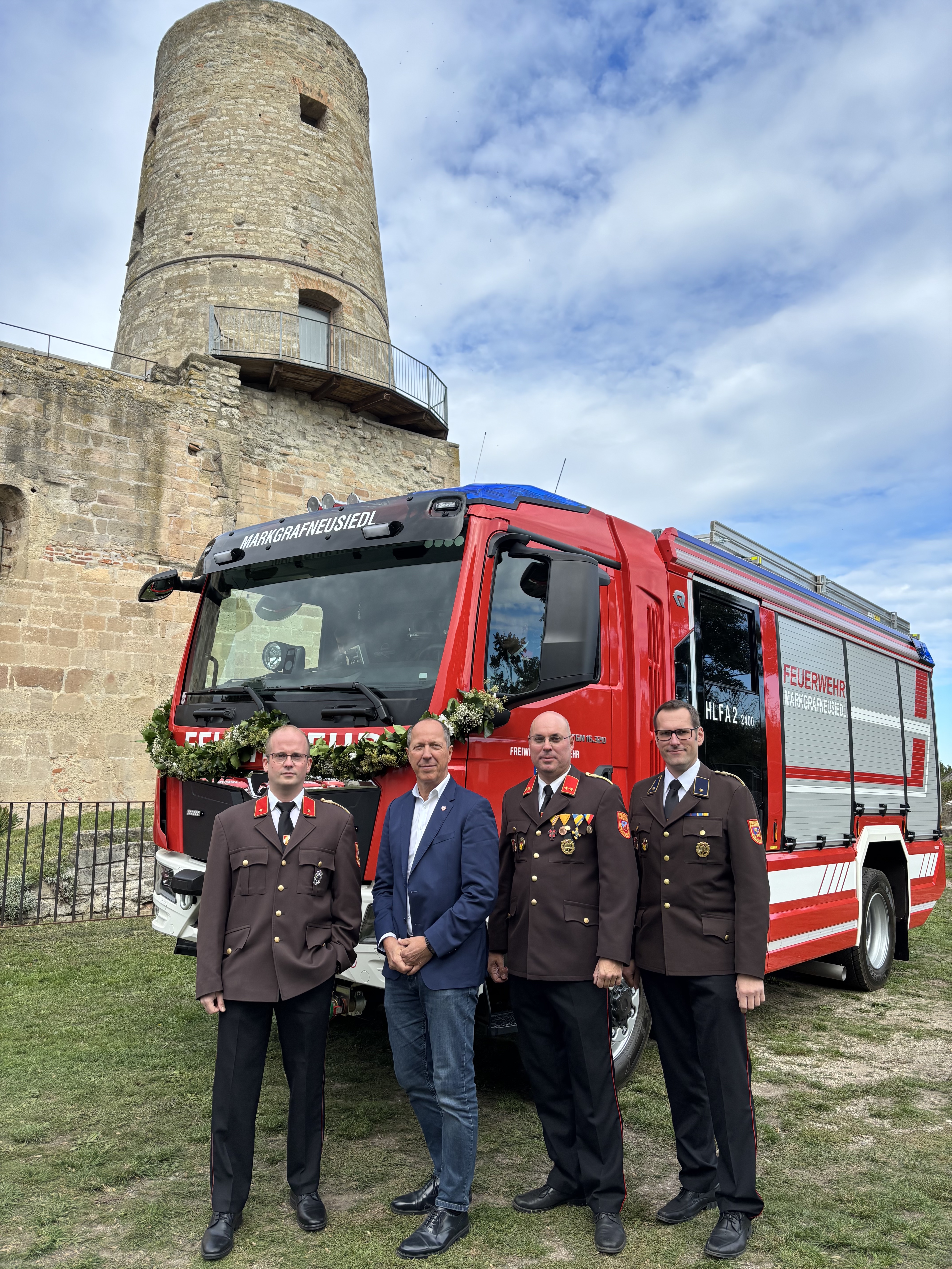 Bürgermeister Seidl bedankte sich bei den Kameradinnen und Kameraden, die viel Zeit und Energie in die Planung und Konzeptionierung des Fahrzeugs investiert haben. Er bezeichnete das neue Fahrzeug nicht nur als ein Stück moderner Technik, sondern als Symbol für Sicherheit, Einsatzbereitschaft und Teamgeist. Es stehe für den Mut und die Hingabe, mit denen die Einsatzkräfte Tag für Tag bereit sind, Menschen in Not zu helfen. Abschließend wünschte er den Kameradinnen und Kameraden, dass das Fahrzeug stets zuverlässig sei und sie immer sicher zu den Einsätzen und wieder nach Hause bringe.