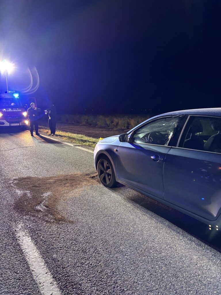 Am 24. Oktober 2025 wurden wir gemeinsam mit der Freiwilligen Feuerwehr Großhofen um 18:51 Uhr zu einer PKW-Bergung mit ausgelaufenen Betriebsmitteln alarmiert. Nach einem Wildunfall kam ein PKW auf der Fahrbahn zum Stillstand. Der Lenker reagierte vorbildlich und alarmierte umgehend die Polizei.