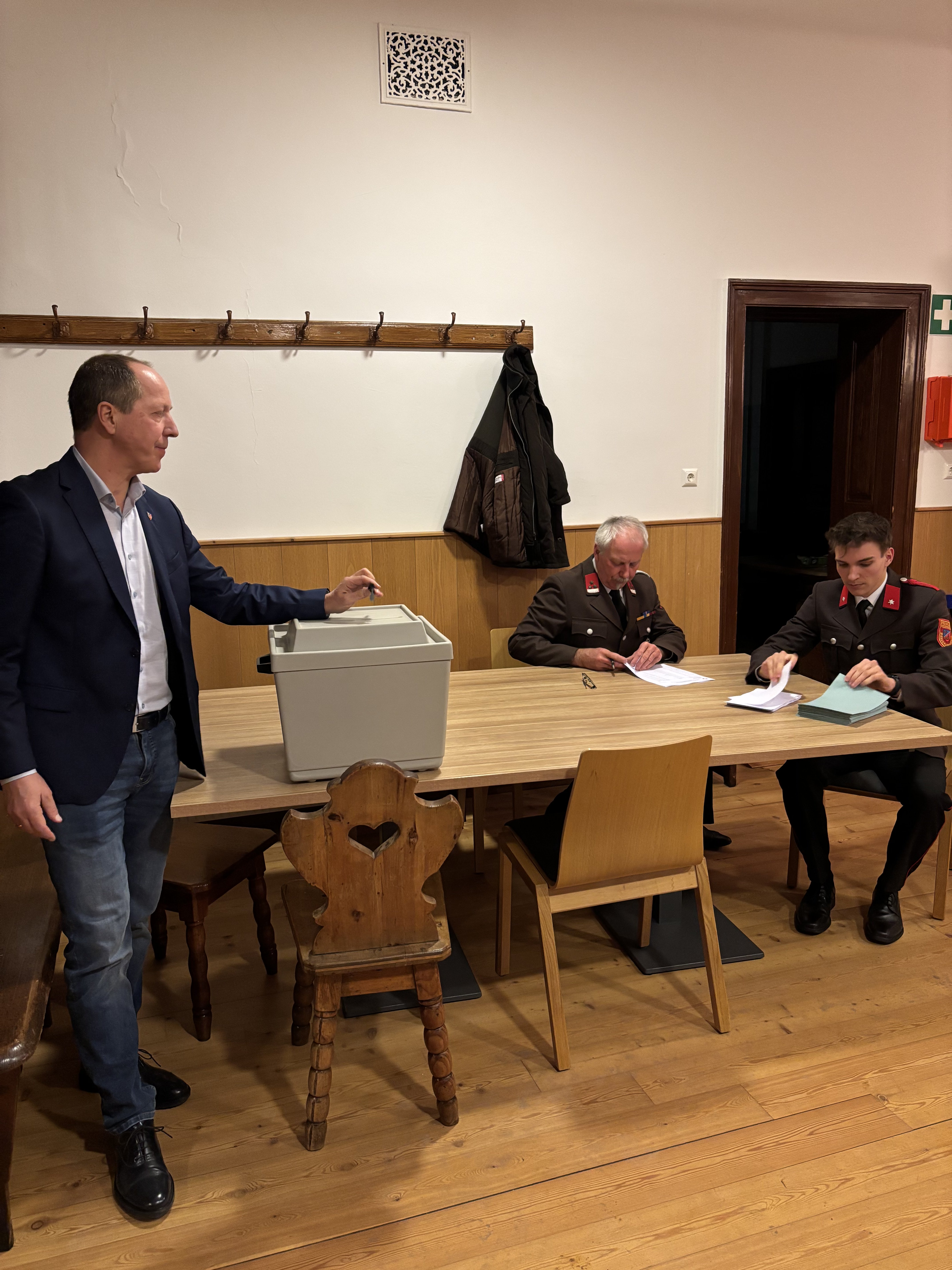 Es folgte die Wahl des Kommandanten sowie des 1. Kommandant-Stellvertreters. Zur Wahl standen Oberbrandinspektor Johannes Hofer als Kommandant und Brandmeister Markus Prenner als 1. Kommandant-Stellvertreter. Nachdem die 48 Wahlberechtigten ihre Stimmen abgegeben hatten und die Wahlvorsitzenden gemeinsam mit Bürgermeister Seidl die Stimmen ausgezählt hatten, konnte Bürgermeister Seidl Oberbrandinspektor Johannes Hofer erneut als Kommandanten angeloben. Markus Prenner wurde zum 1. Kommandant-Stellvertreter bestellt und in diesem Zuge zum Brandinspektor befördert. Im ersten offiziellen Schritt wurde Verwalter Andreas Dobrovodszky wieder zum Leiter des Verwaltungsdienstes ernannt.