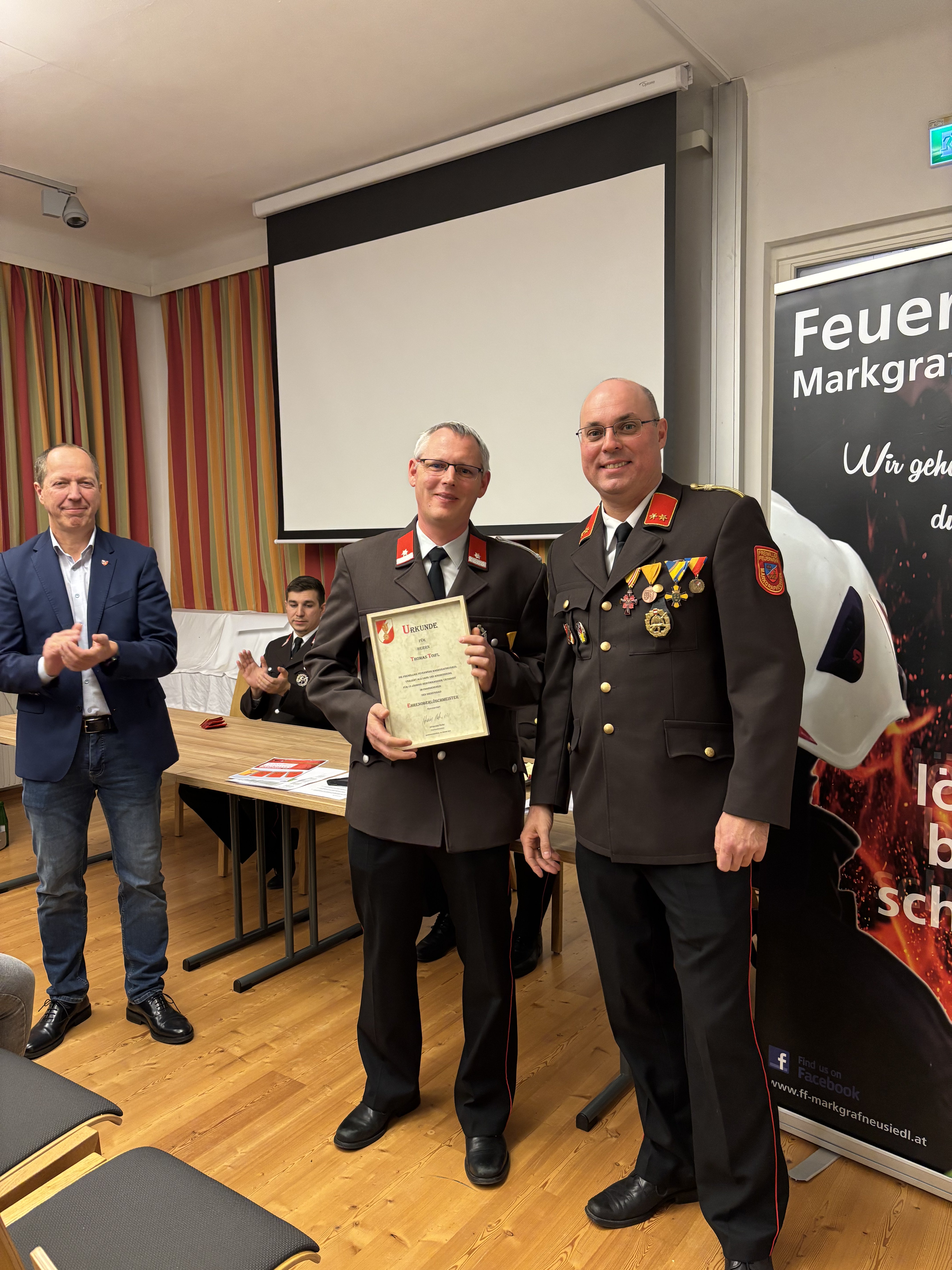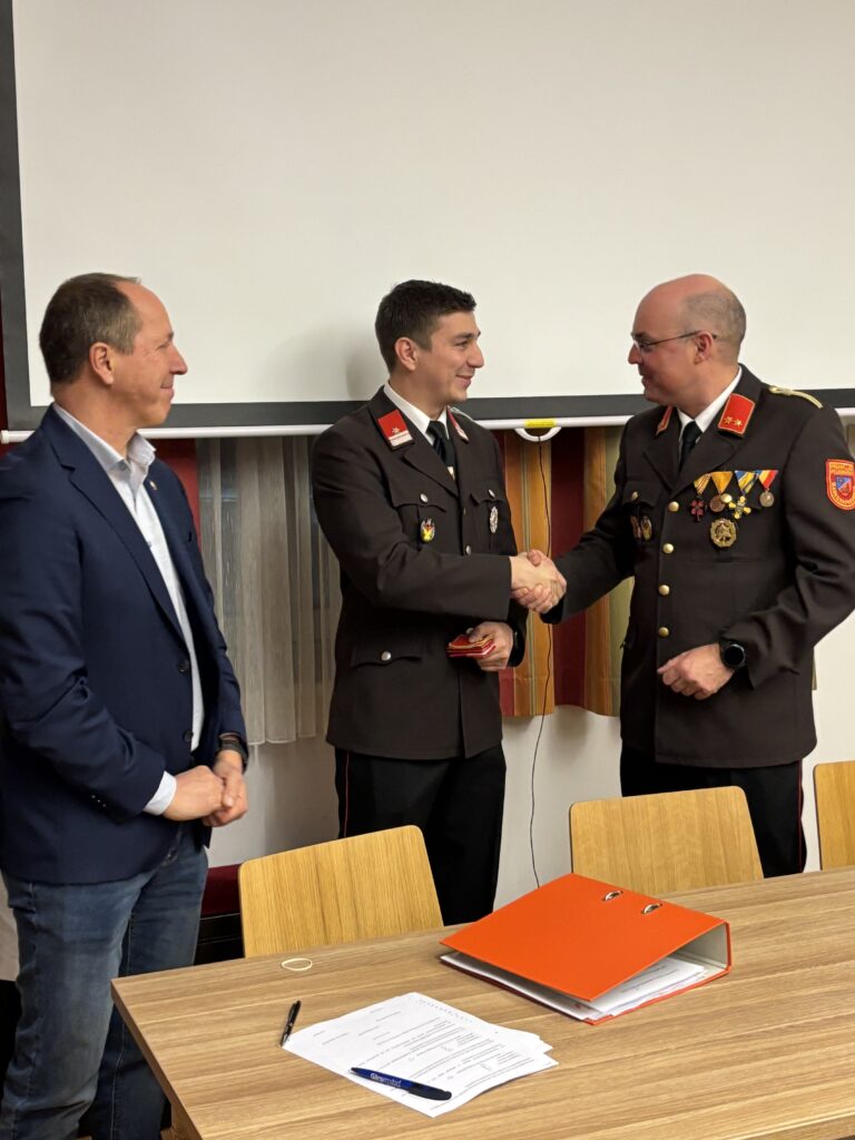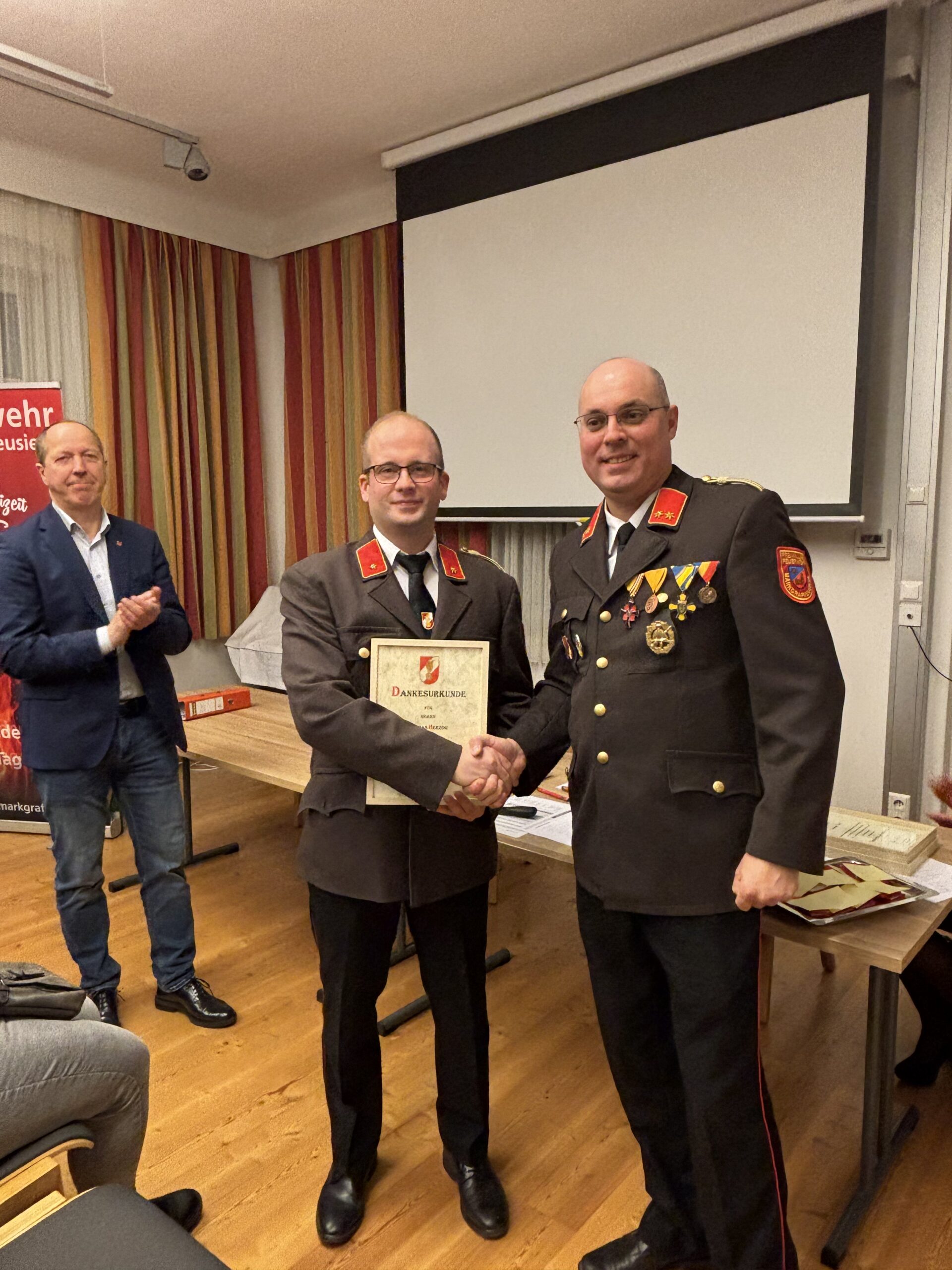 Ein großer Dank erging an Thomas Herzog, welcher von 2018-2026 die Funktion des 1. Kommandant Stellvertreters ausübte. Im Anschluss bedankte sich das neu gewählte Kommando bei den aus dem Chargenkreis scheidenden Kameraden Ehrenoberbrandmeister Bernhard Klein, Ehrenoberlöschmeister Thomas Toifl, welche die Ehrendienstgrade erhielten, bevor zahlreiche weitere Beförderungen durchgeführt wurden.