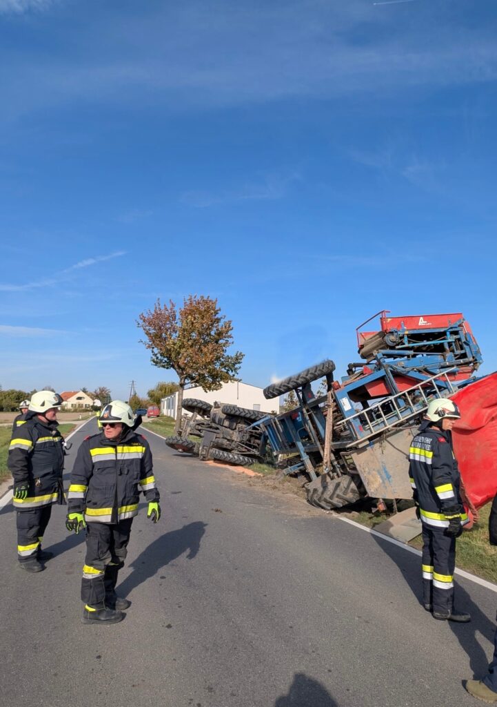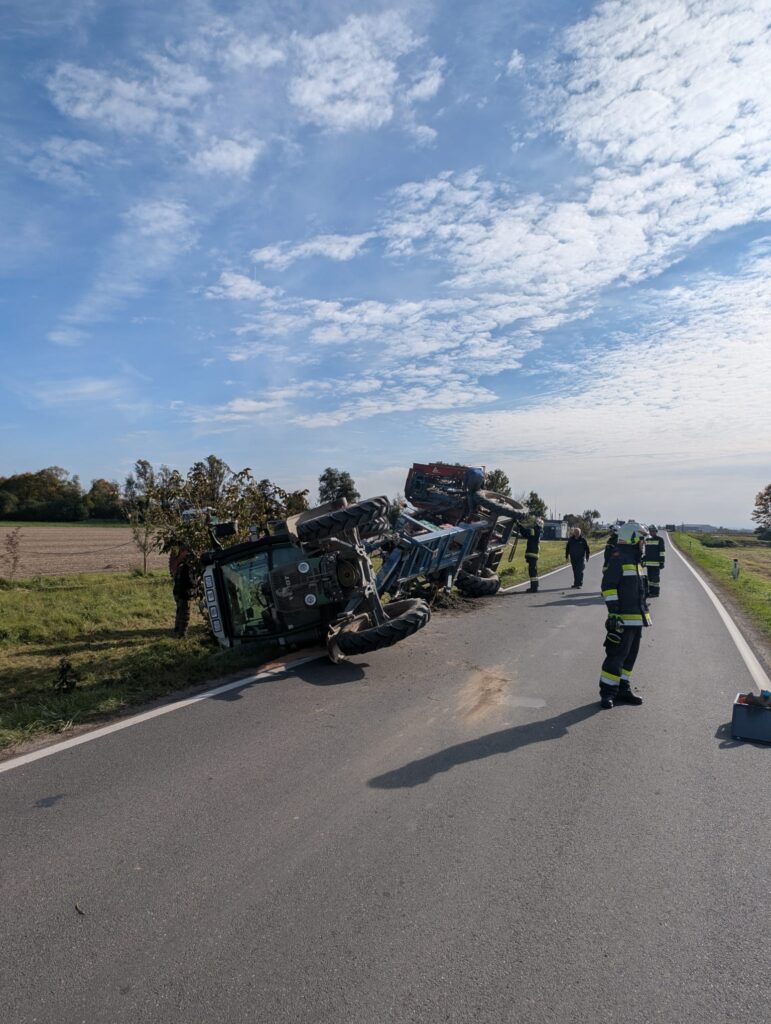 Am 20. Oktober 2025 um 13:31 Uhr wurden wir zu einem technischen Einsatz alarmiert. Ein Traktor mit angehängter Erntemaschine war aus bislang unbekannter Ursache umgekippt. Während der Lageerkundung wurde die Unfallstelle abgesichert und anschließend die Straße vollständig für den Verkehr gesperrt. Ausgeflossene Betriebsmittel wurden mit Ölbindemittel gebunden und aufgenommen. Anschließend konnten der Traktor sowie die Erntemaschine mittels Seilwinde wieder aufgestellt werden. Der Straßenerhalter sowie die Bezirkshauptmannschaft wurden aufgrund des Ölaustritts verständigt.